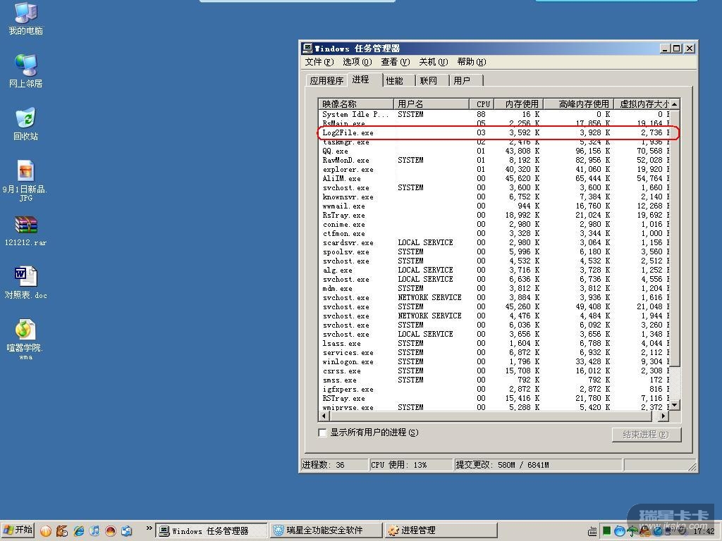 通过瑞星工具确认了log2file.exe与ravmond有关