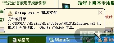 瑞星软件文件出错chkdsk之后