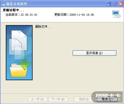我升级瑞星杀毒软件时,总是到最后一步不能完成,显示为: