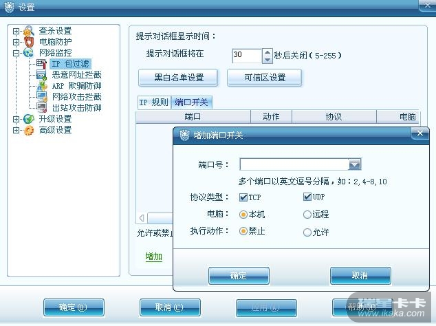 瑞星2010如何开放tcp 443端口号?