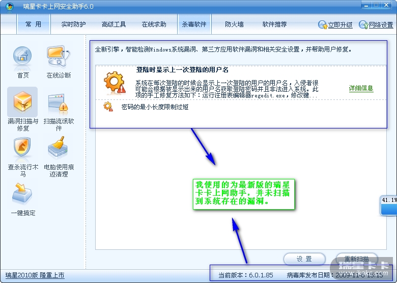 瑞星卡卡上网助手漏洞检测不及同类软件