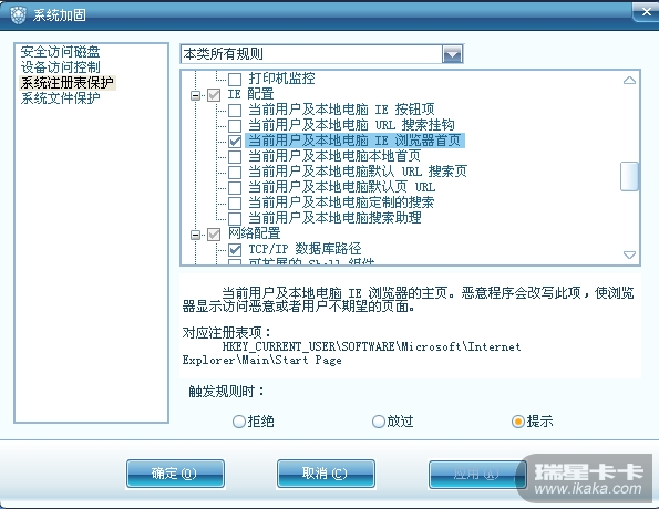 这也符合家庭模式的含义,lz可以更改模式为专业模式。或自行设置勾选系统加固注册表保护的ie配置
