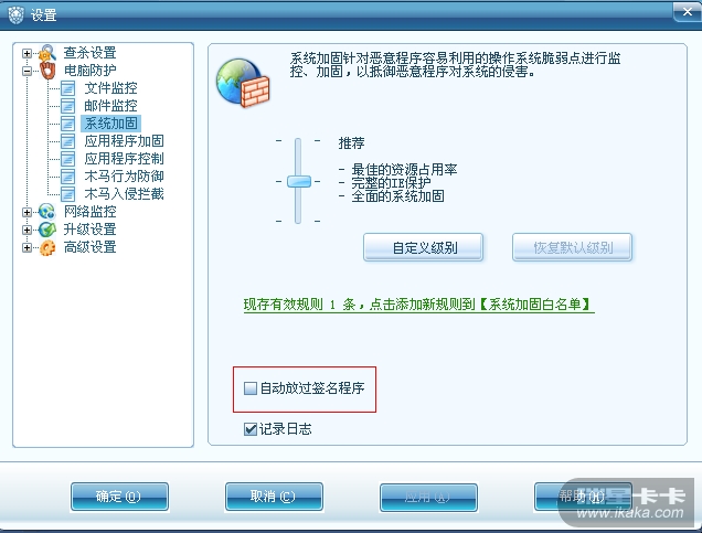 系统加固里取消智能放过签名程序