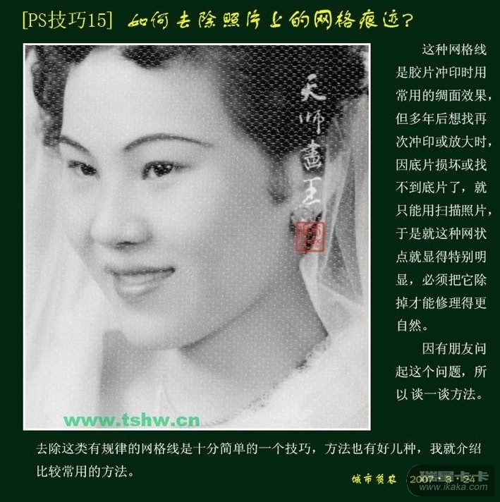 卡卡PS大课堂——第27课 去除翻拍照片上的网格痕迹
