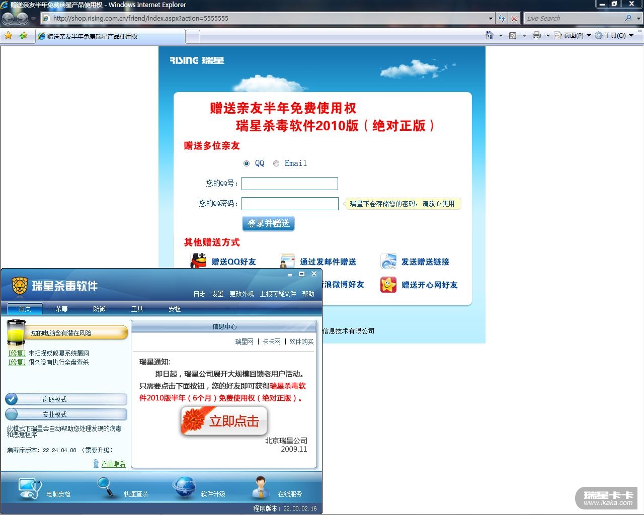 [求助] 瑞星主程序 赠送亲友半年免费使用权