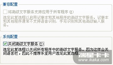 正常应该是下边那个“关闭高级文字服务”复选框是不选的.