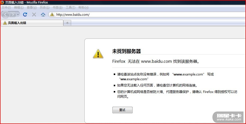 如不勾选任何程序分类,则所有程序的网络访问请求均无效,以下为Firofox浏览器访问网页、QQ登录被拒绝。