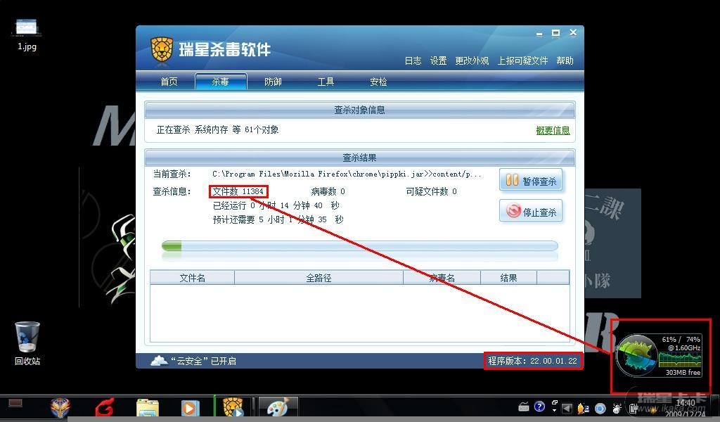 也许目前的引擎还处在"打磨"阶段,也许它对WIN7 凌动的支持还有种种问题。但是我开始都怀疑我得到消息是否可靠,瑞星的引擎真的升级了吗?但是至少在WIN7+上网本这个平台下新版引擎的威力是无法发挥的,等待台式机XP系统的测试结果。