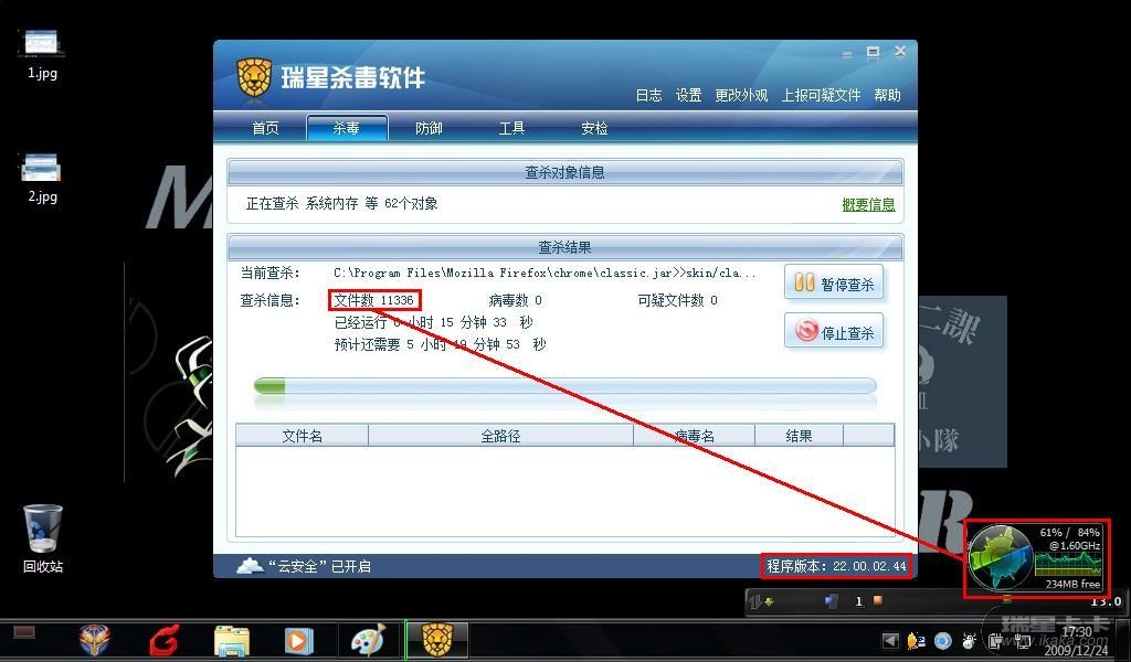 新版(引擎升级版)在查杀到11111左右的资源占用情况