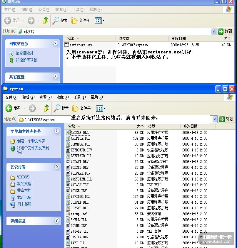 接着,删除c:\windows\system\serivcers.exe,搞掂。