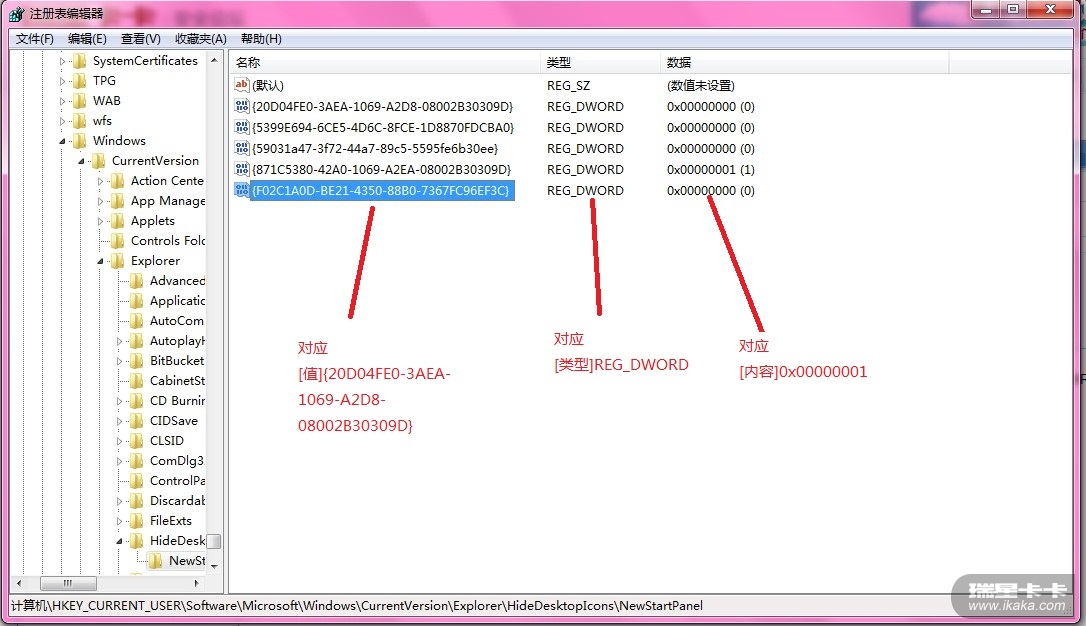 并且我们看到,涉及桌面图标的注册表项中,有下面这项存在: