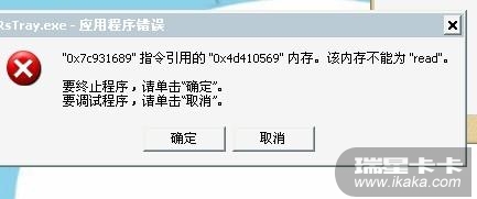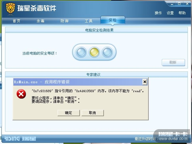 瑞星杀毒软件一开 就出现该内存不能为read