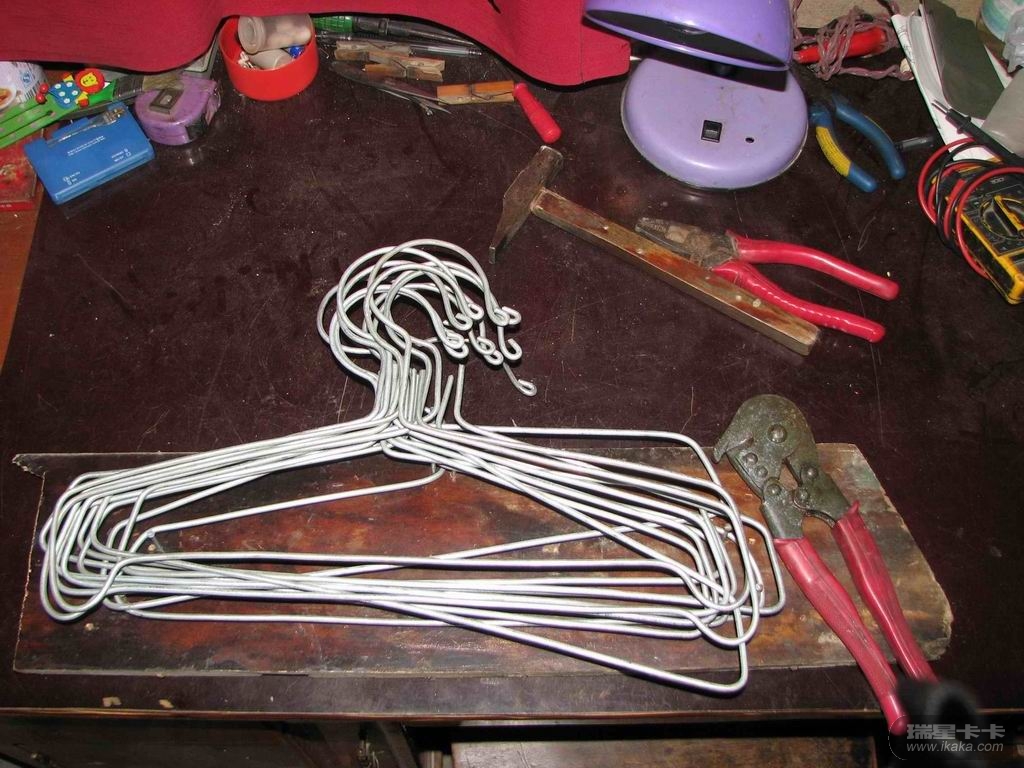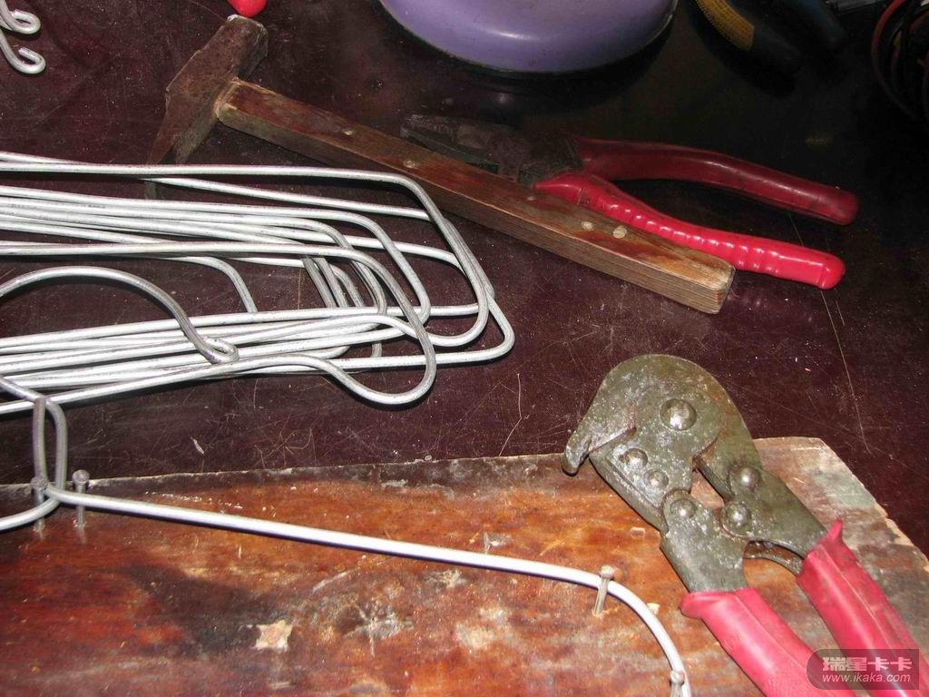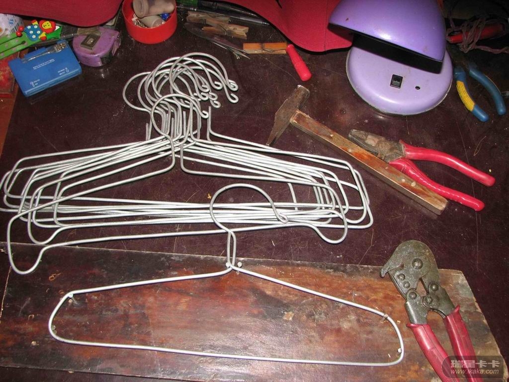 衣架以及衣架的固定板和钳铅丝的钳具和榔头老虎钳!