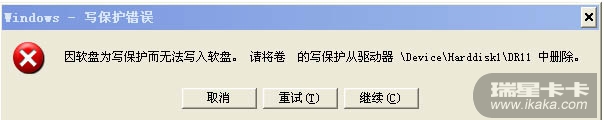 近日,本人一个新买了几天的联想2G U盘 ,突然不能删除文件和格式化,只要一插入电脑就显示 windows 写保护错误。如下图