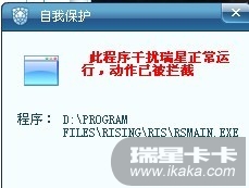 今天刚下了全功能,也购买了。怎么装好之后,访问瑞星,老出现“自我保护--此程序干扰瑞星正常运行,动作已被拦截”。还让不让人搞啊?!都用瑞星3年了,第一次遇到这样。希望速度帮我搞定。玩游戏都被卡。
