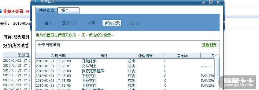 同样是杀毒软件设置的自动升级,都没防火墙的频繁,而且每次都更新了文件