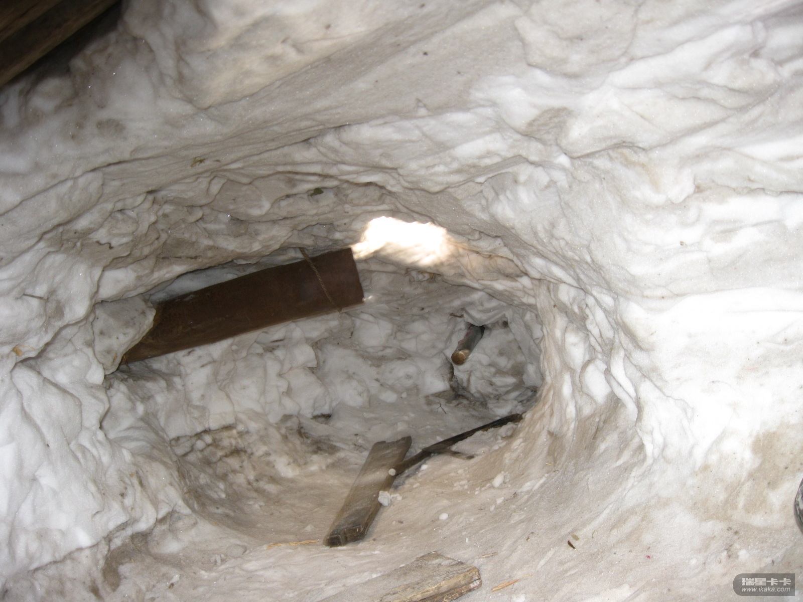 这是雪洞外面,上面扣得是一个桌子,老爸不用了。我就给弄上去了,左面的箱子是一个门,可以进去,看这张图