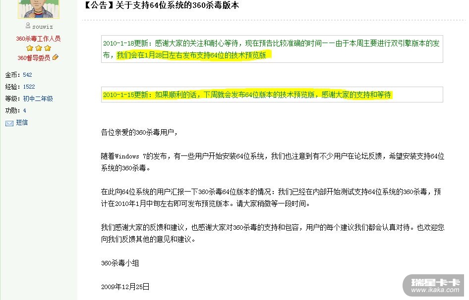 360杀毒1月28号就出64位版了,瑞星什么时候才能出?不要被360追上啊。。。