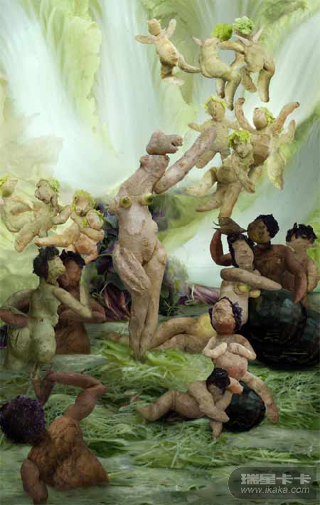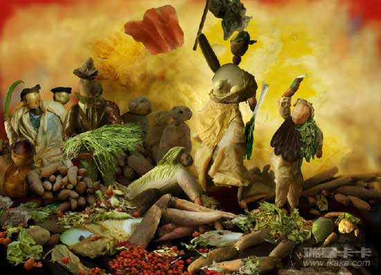在她的作品《蔬菜博物馆》系列中,她用各种各样的蔬菜重新“临摹”了多幅世界名画,并拍摄成数码照片,比如这幅达·芬奇的《蒙娜丽莎》,所有原料就是豆腐,海带,大白菜,花椒,土豆,豆腐丝……,她所“绘制”的名画还有《最后的晚餐》、毕加索的《梦》、安迪·沃霍尔的《玛丽莲·梦露》、欧仁·德拉克罗瓦的《自由引导人民》等。下面让我们欣赏更多用蔬菜做成的“世界名画”作品。