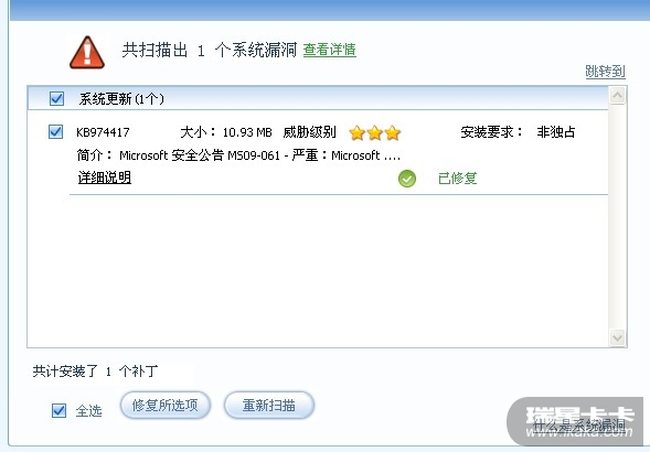 看看添加删除程序中是否能查到这个补丁,试试手动安装这个补丁,提示什么信息