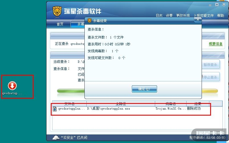 彻底查杀完,在安装瑞星进行全盘扫描。