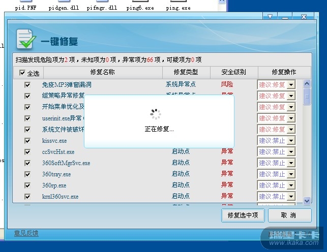 清理病毒完毕后,你的系统必须利用卡卡助手或QQ医生等软件去