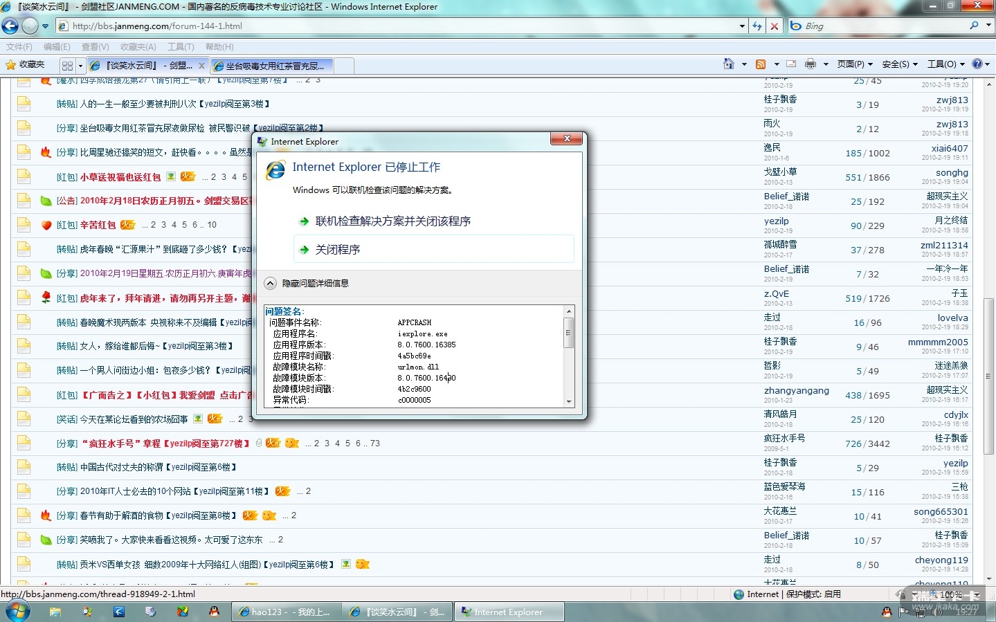 瑞星卡卡安全论坛技术交流区系统软件 这两天见鬼了?IE8老是报错