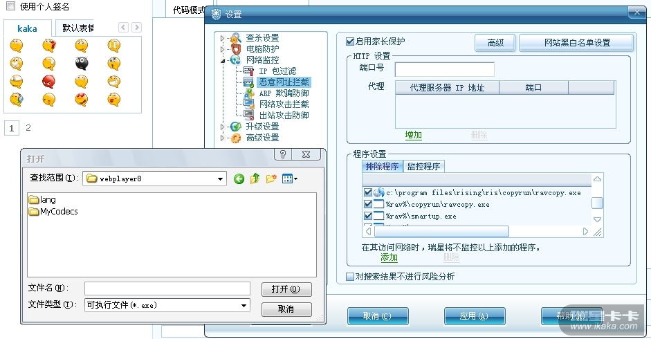 程序设置里 添加排除程序 这个webplayer8 没有.EXE 程序