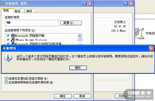 打开“本地连接”属性,出现如下提示,IP地址不能修改。请高手帮帮忙!!!