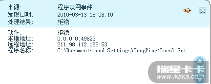 而瑞星报告了有人Ping入,就说明它已经拦截成功,你的电脑没有问题。