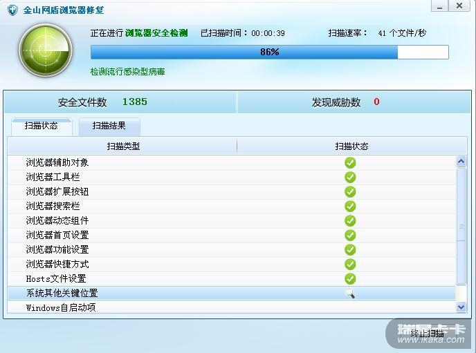 发现金山网盾3.5版的ie修复功能改进后,比卡卡的系统修复强悍,建议卡卡改进!!!