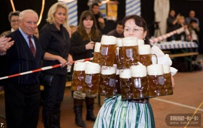 德国的Anita Schwarz保持一次拿最多杯啤酒的记录,她拿着19杯啤酒前进了40米。