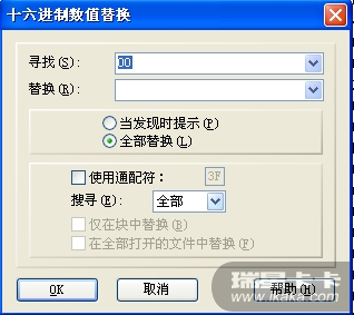 上图中红色框标记出的就是终止符(00),需要将其进行替换。winhex工具点击搜寻下的替换十六进制数值,