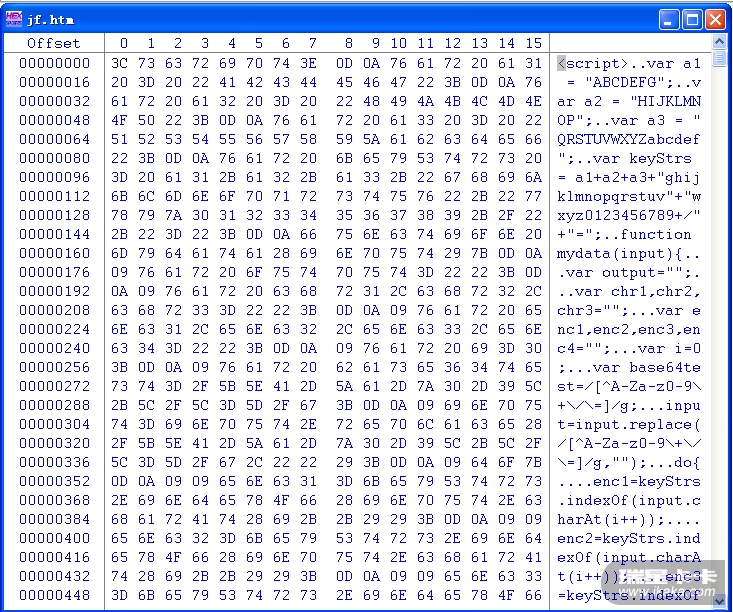 在这里就讲解一下,解密的技巧吧。 首先,源代码中很乱,有很多的空格字符,实际上是终止符(00),需要整理一下源代码,提供一个快速代码的方法,使用winhex工具来进行替换,此方法由小聪大牛提供。