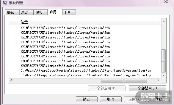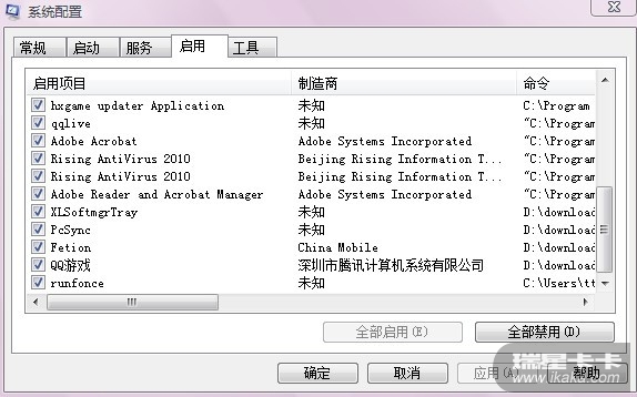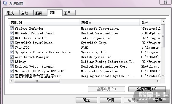 看列表的“命令”栏,找到包括“sysdeys.dll”字符串的项目,把这个项目取消勾选后,再重启电脑。