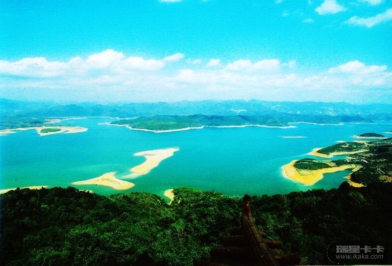 风景区以自然山水为主体,湖水终年清澈碧绿、湖中岛屿星罗棋布、湖岸群山青翠延绵、湖面常年飞鸟云集,湖中自然景观别具特色:有神奇的天然雅芒崖像、孔雀迎宾林、松林岛、枫树岛、情人岛、鲸鱼岛、水果绿洲等风景点。
