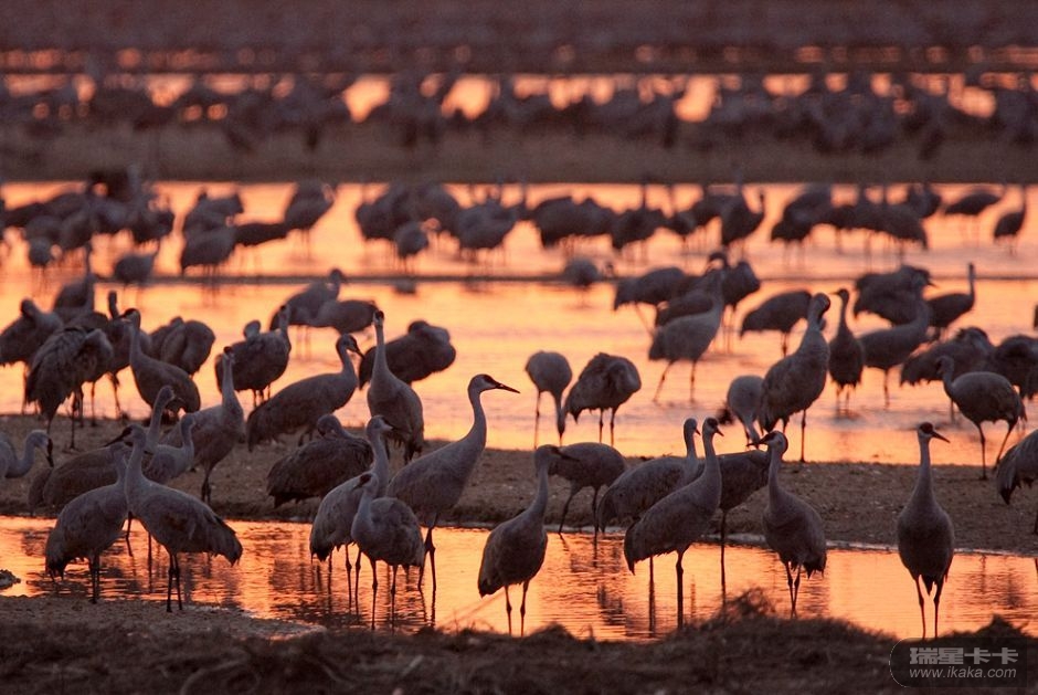 3月31日,美国内布拉斯加州吉本,一群沙丘鹤聚集在普拉特河的沙洲上,准备过夜。他们将在那里过夜。沙丘鹤每年的迁徙都要在内布拉斯加州普拉特河稍作停留,休息并补充饮食。