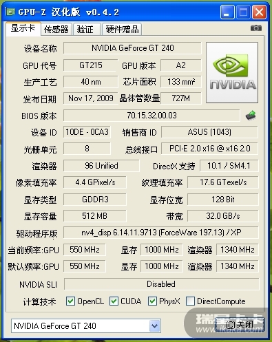 ←GPU-Z(显卡测试工具)测试结果