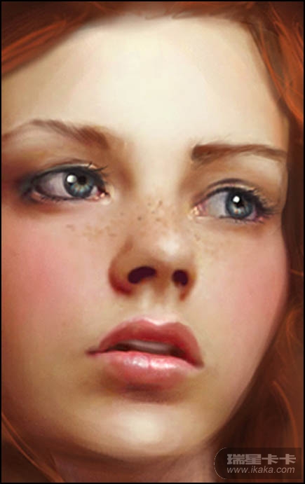 因此,我决定使用原来的那个。脸部选择完成后,我又为这张图片提高了一些亮度,而且还在Painter里将粗糙的地方弄平滑。然后添加了一些细节,并且将重点放在了眼睛,鼻子和嘴唇上面。最后的合成是使用Painter里面的“添加水”工具完成的。(图6、7)