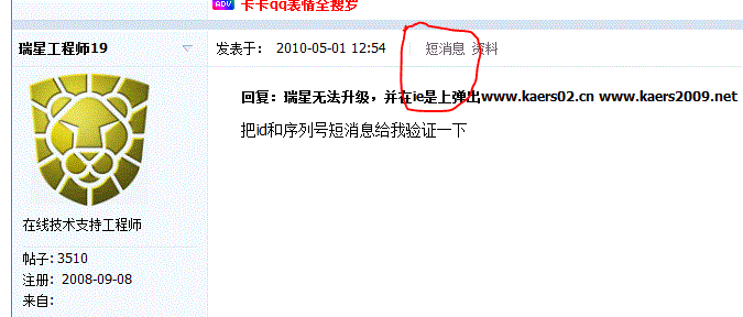 回复: 瑞星无法升级,并在ie是上弹出www.kaers02.cn www.kaers2009.net