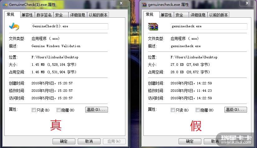真正的GenuineCheck.exe是微软的一个正版验证工具。有些系统补丁或工具,微软只提供给正版用户使用。因此,下载这些工具前,微软要用户运行GenuineCheck,验明正身。