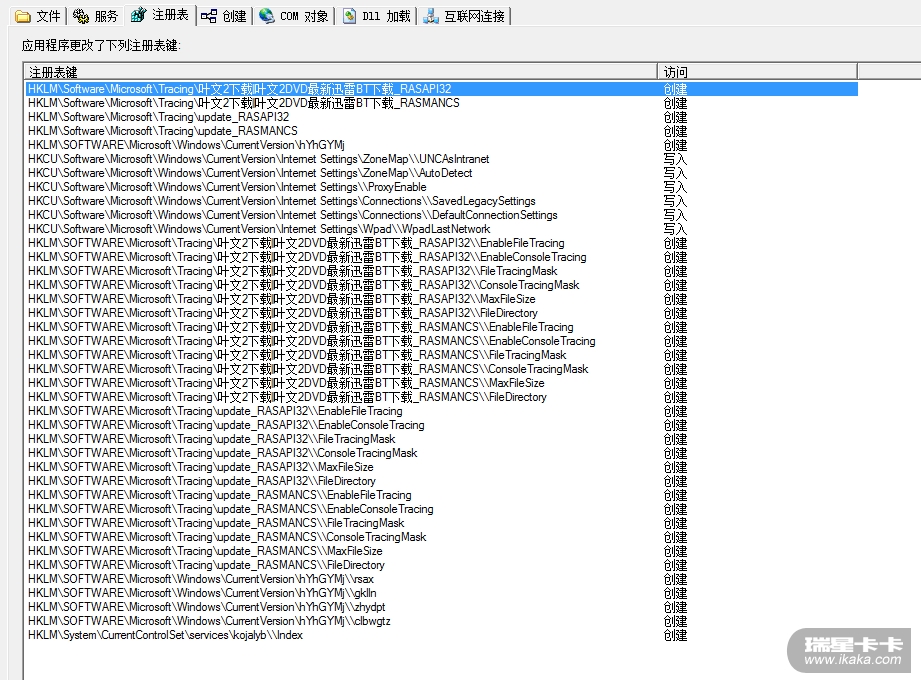 CAHIPS 检测到的注册表改动: