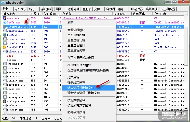 三、用XueTr暴力结束 Wondershare Time Freeze进程并 删除Wondershare Time Freeze的程序及其驱动: