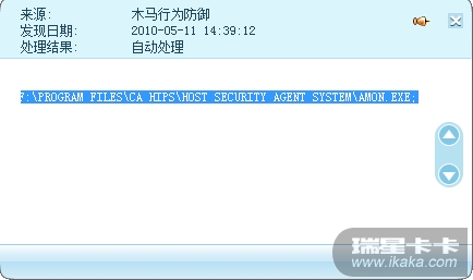 另:此毒在WIN7 下与XP下运行结果不同。在WIN7 下,它只是冒名顶替了CAHIPS的活动监控程序;在XP下,如果没有RIS2010的保护,此毒冒名顶替的对象是ctfmon.exe。(系统正常的程序ctfmon.exe被病毒改名为ctfmon .exe)。