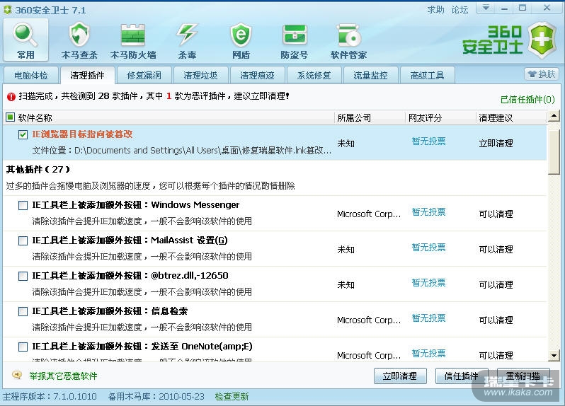 修复瑞星软件被360评为恶意插件