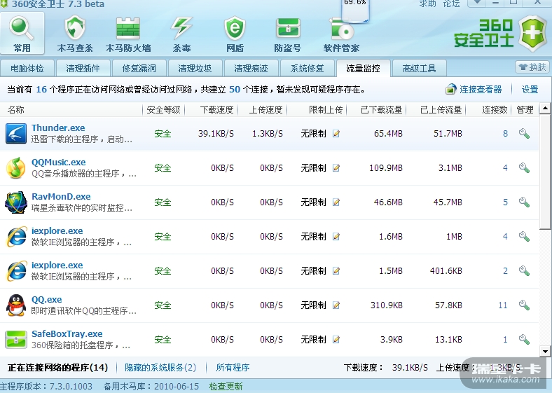 第一个月还在用瑞星,监控流量的软件也是360。大家都知道瑞星没有监控,那我就用其他的了,360正好有这功能,必须用。