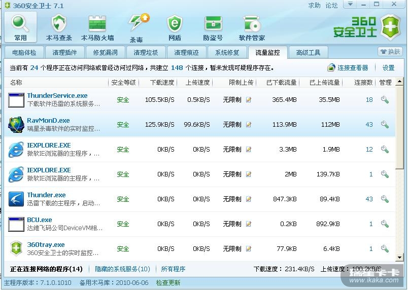 进程后,再用360查的话则无流量产生。网上的答复一般是说:所有的数据进出要先经过瑞星进行交换。行,此说法我认