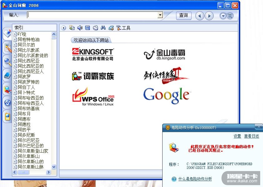 金山词霸正在执行危害电脑的动作