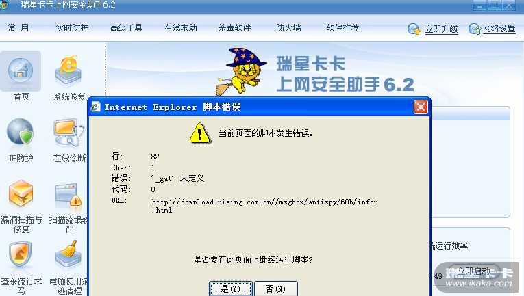 最近卡卡安全助手时常会出现脚本错误,不知是何原因?