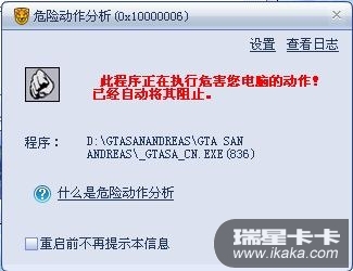重启后再运行游戏看看,另外查看下瑞星的历史记录看是 哪个功能拦截的